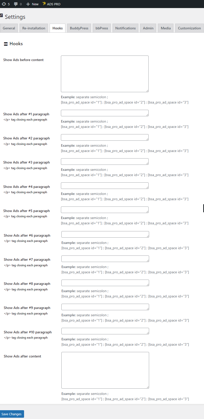 Aquí puedes pegar códigos cortos para mostrar anuncios antes o después del contenido.