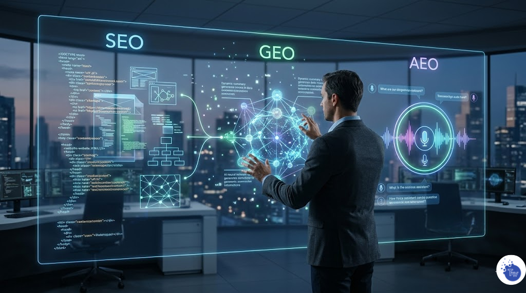 SEO, GEO y AEO: Guía Maestra para Dominar la Visibilidad en la Era de la IA