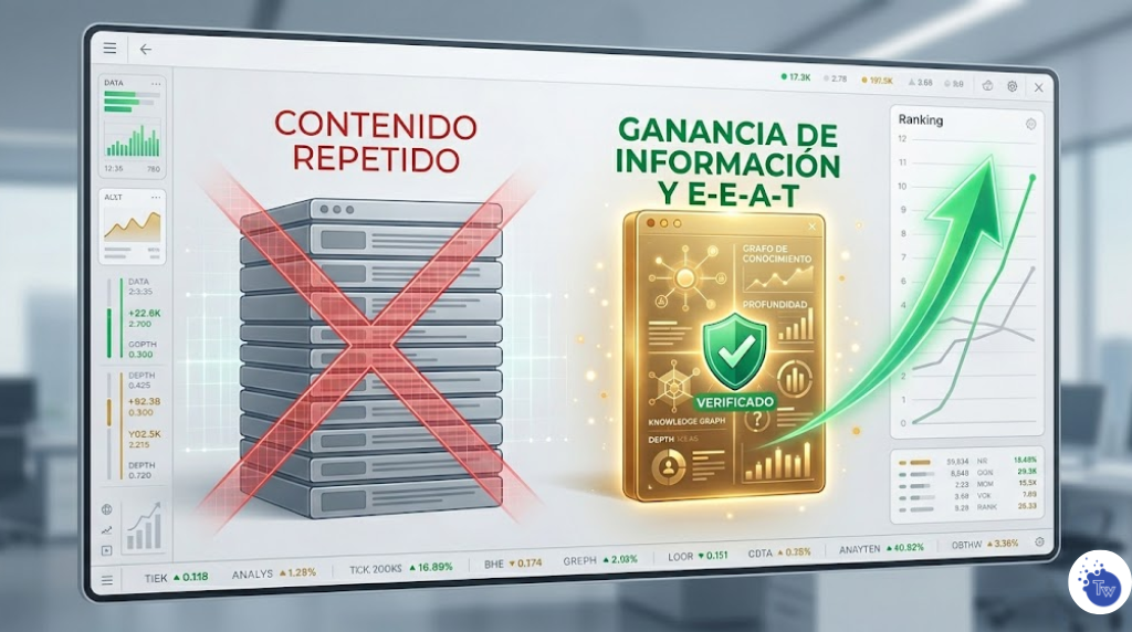 Es un factor de ranking que premia el contenido que aporta datos nuevos, opiniones expertas o casos de estudio originales, penalizando las webs que solo repiten información que ya existe en otros sitios.